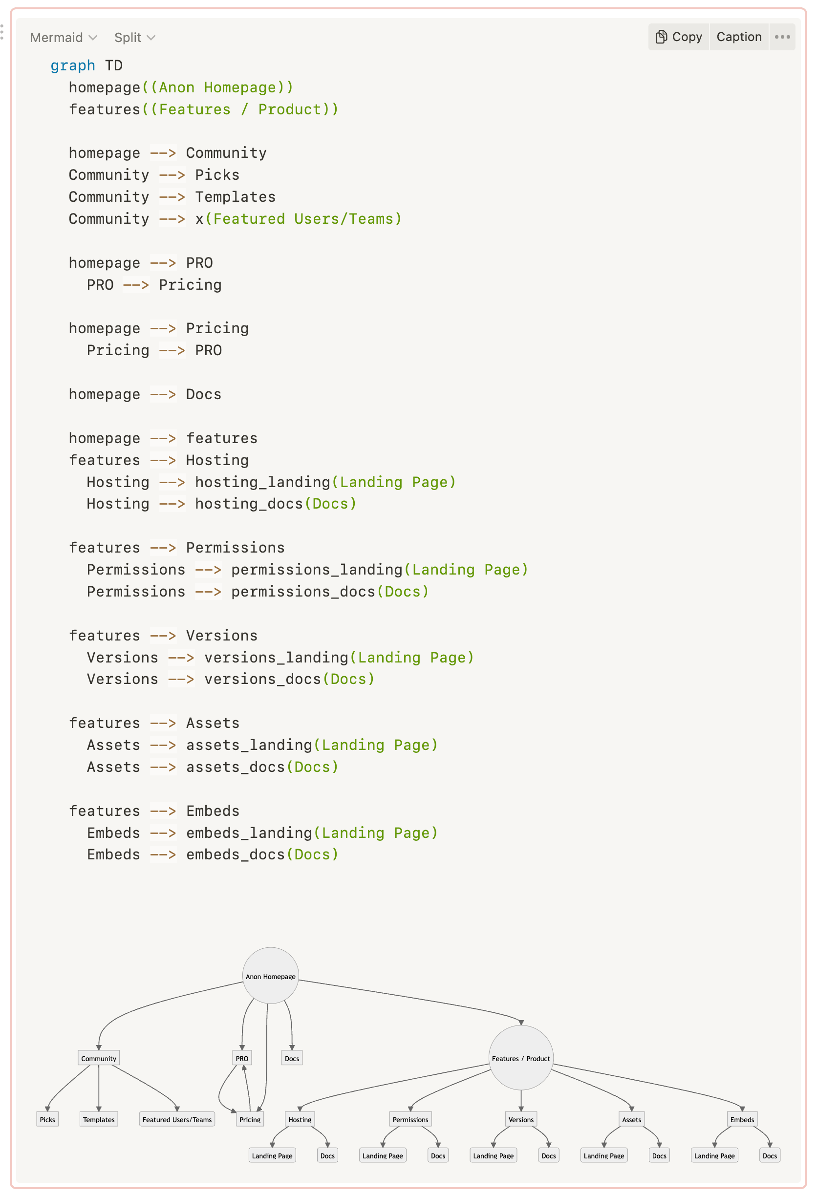 I used it just the other day to document a website pages hierarchy to help understand what pages link to what other pages and go “under” them which will affect the URLs and such. The chart is ultimately what is useful to see, but it took some light “code” to make it.